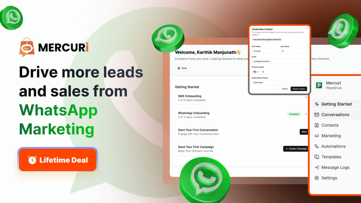 MERCURIDrive more leads and sales from WhatsApp marketing. | PODMOJORepurpose audio into 20+ shareable assets in one click. |